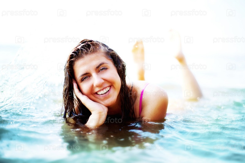 Девушка лежит в морской воде
