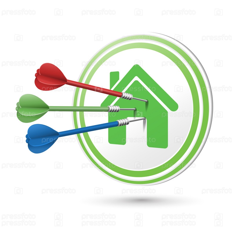 Дротики в значке дома в центре мишени