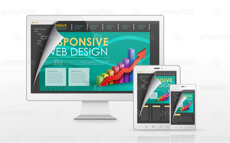 Адаптивный веб-дизайн в телевизоре, планшете и смартфоне