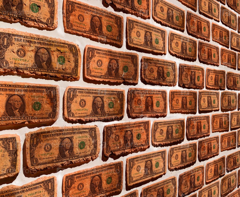 Кирпичная стена с изображениями доллара - символ стабильности