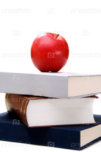 Яблоко на стопке книг