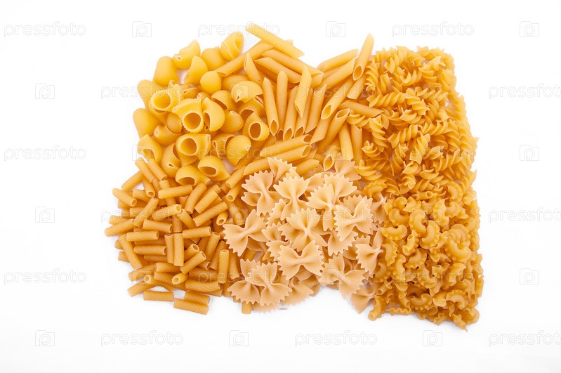 Макаронные изделия на белом фоне