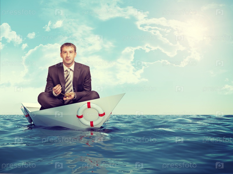 Бизнесмен сидит в позе лотоса