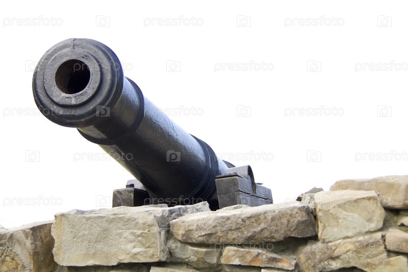 Старая пушка за каменной стеной