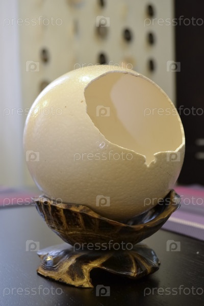 Сломанное страусиное яйцо в подставке