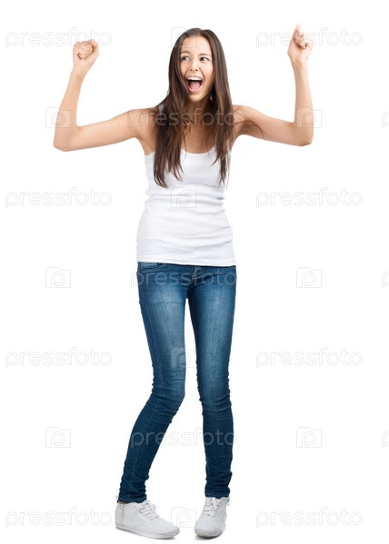 Портрет кричащей девушки с поднятыми руками