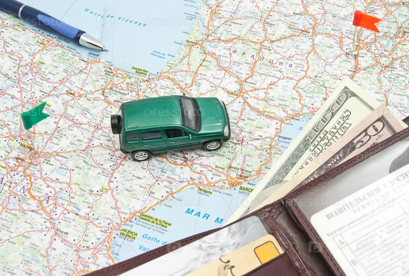 Игрушечный автомобиль и деньги на карте мира