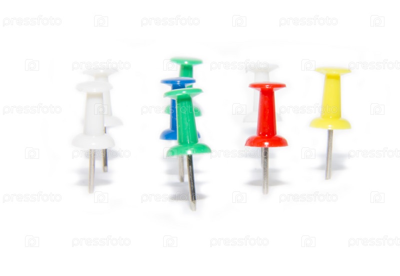 Разноцветные канцелярские кнопки на белом фоне