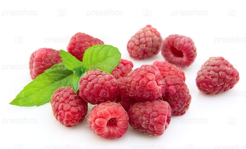 Спелая малина с листочками мяты крупным планом