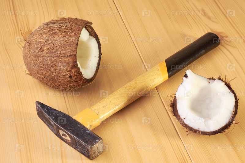Кокос на деревянном столе