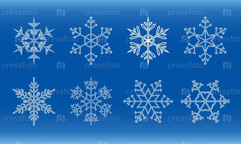 Различные белые снежинки на голубом фоне