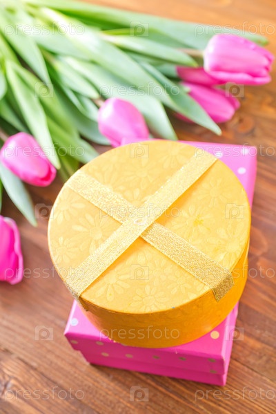 Подарок и тюльпаны