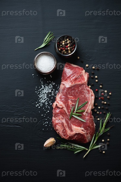 Сырой стейк рибай с приправами и специями