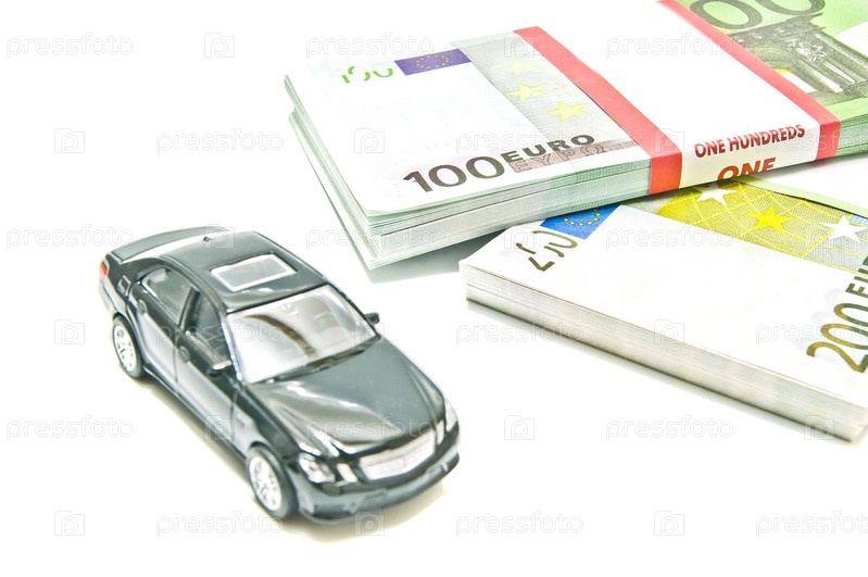 Черный автомобиль на евро на белом фоне