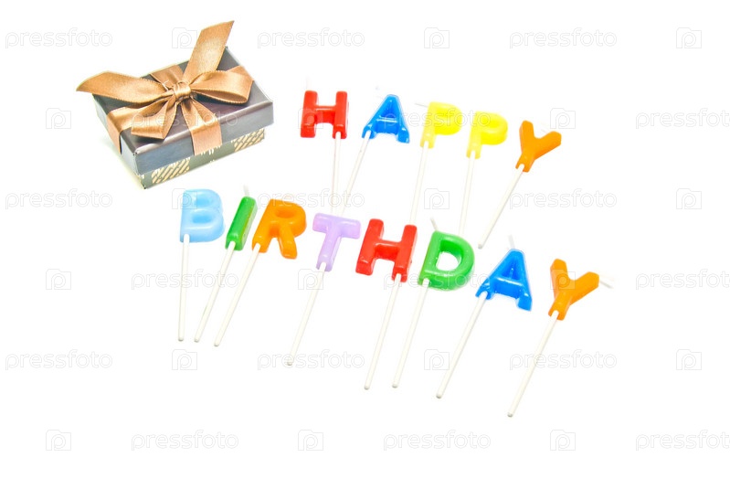 Свечи для торта с подарком на белом фоне