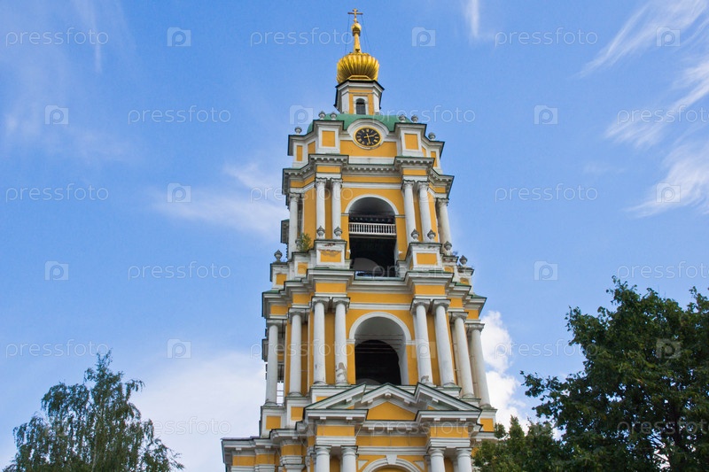 Христианская колокольня на фоне летнего неба