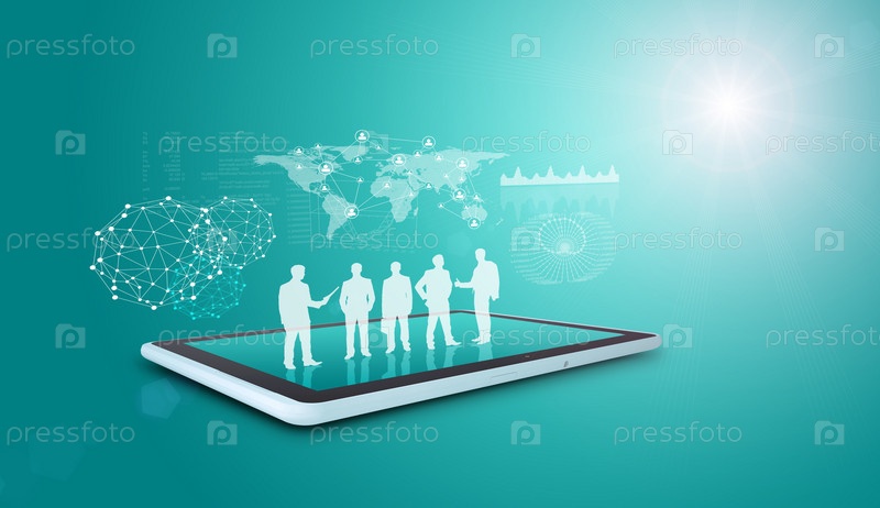 Силуэты бизнесменов на планшете
