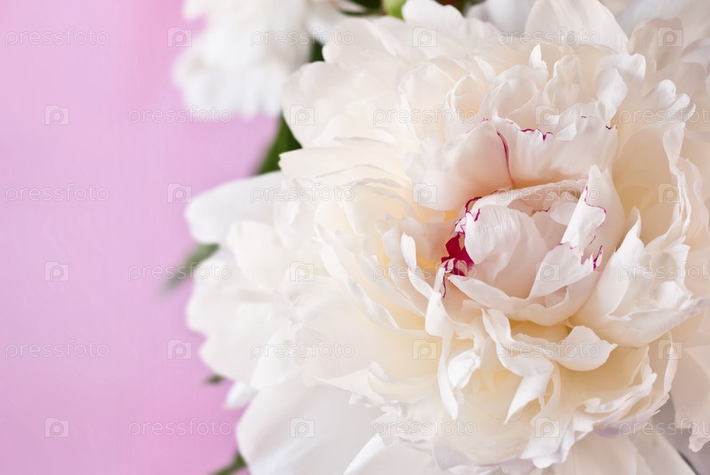 Белый пион крупным планом на розовом фоне