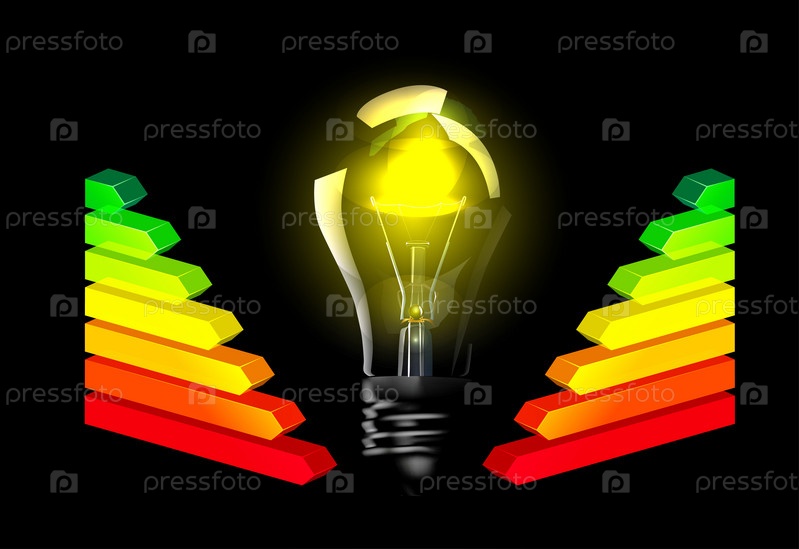 Лампочка и рейтинг энергоэффективности на черном фоне