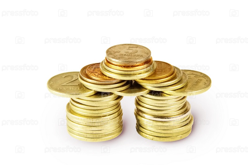 Фигура из монет. Белый фон, крупный план