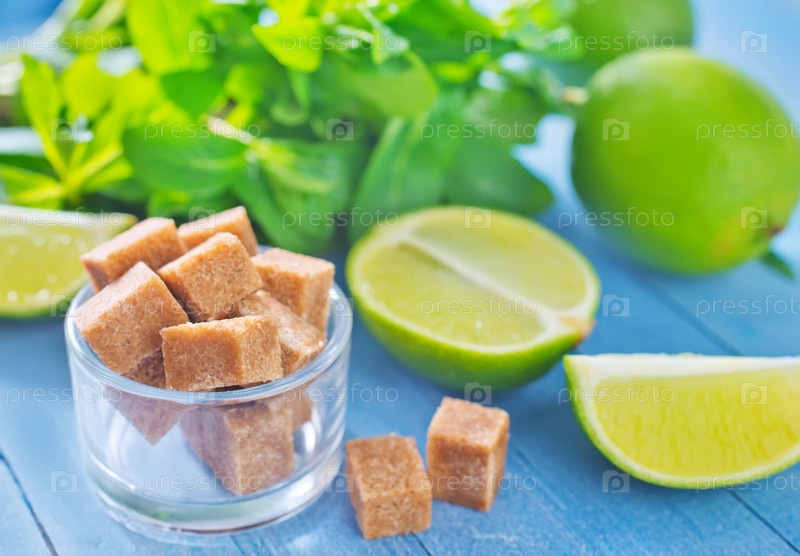 Свежие лимоны с сахаром и мятой