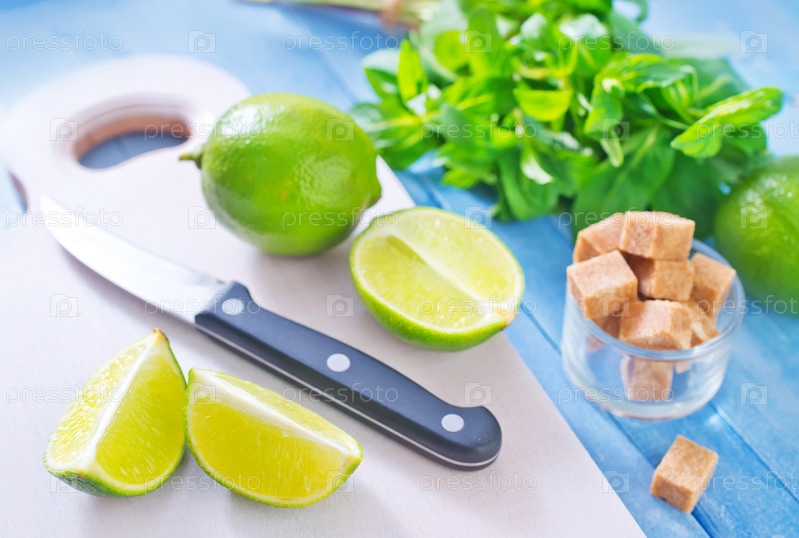 Свежие лимоны с сахаром и мятой