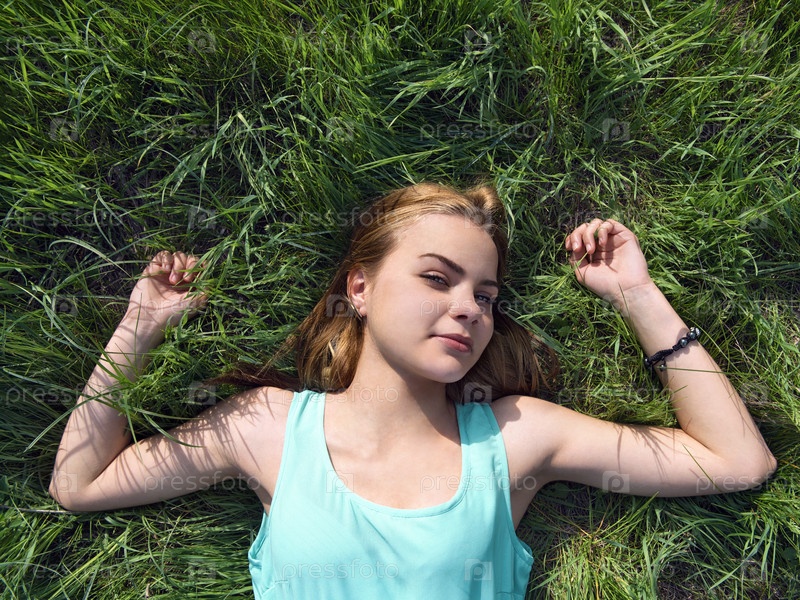 Блондинка лежит на траве
