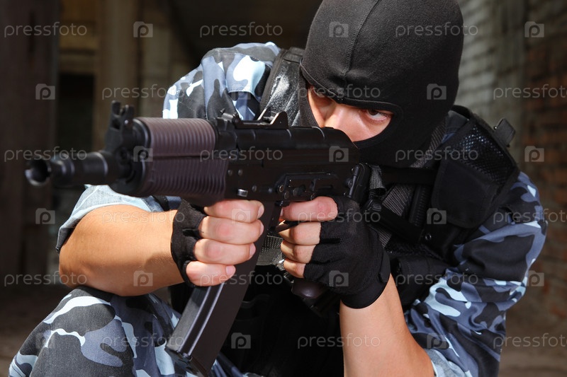 Снайпер в черной маске с винтовкой в руках