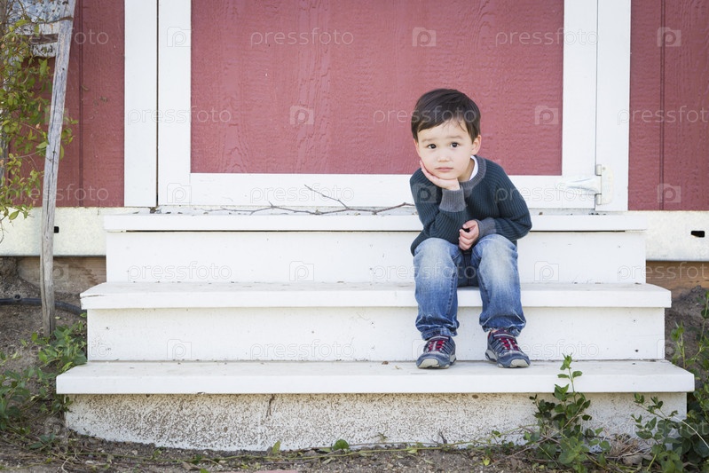 Маленький мальчик на крыльце