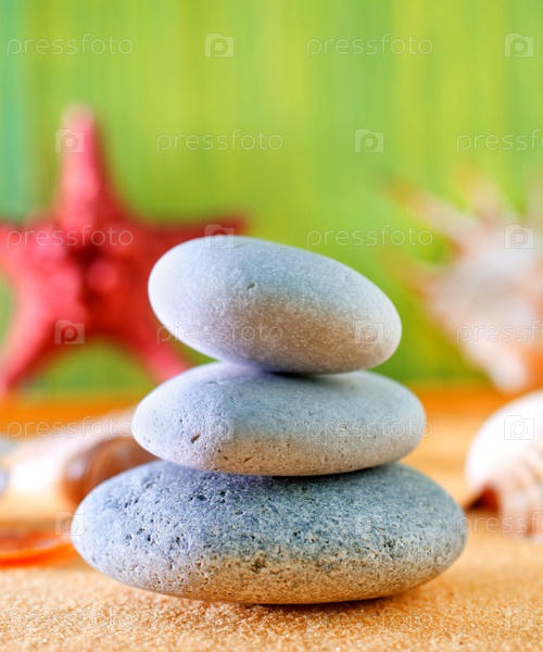 Круглые гладкие камни на песке