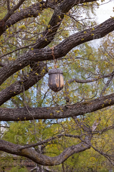 Деревянный желудь на дереве