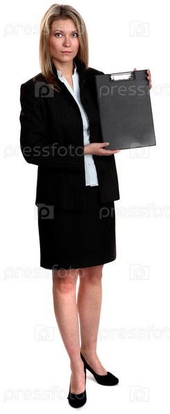 Красивая молодая женщина в деловом костюме на белом фоне