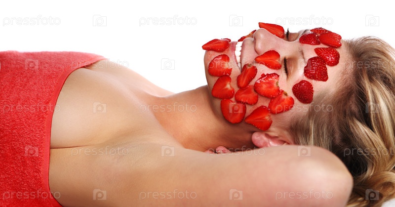 Девушка с маской из клубники на лице