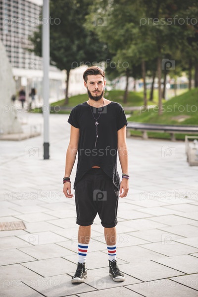 Молодой стильный мужчина в городе