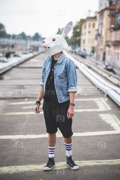 Мужчина в маске кролика