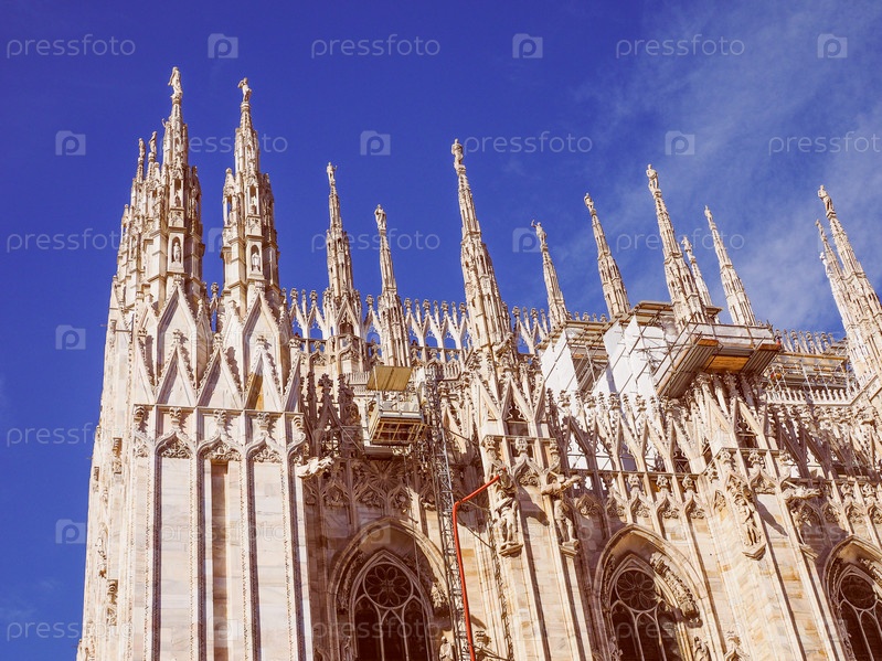 Винтаж Глядя Миланский собор ака Дуомо ди Милано готическая церковь