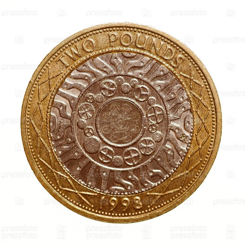 Монета 2 фунта, изолированная на белом фоне