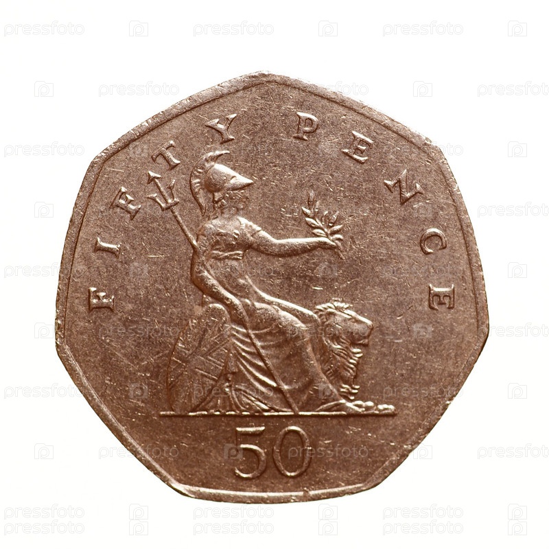 Монета 50 пенсов, изолированная на белом фоне
