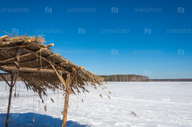 Соломенная крыша и снег