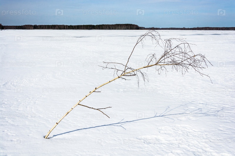 Ветвь березы на снегу