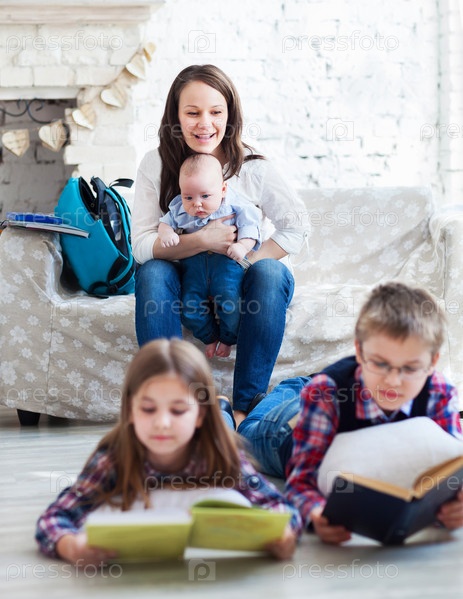 Дети читают книги в гостиной