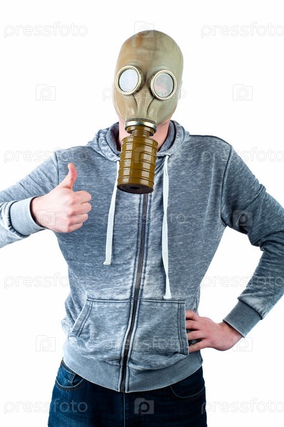 Молодой человек в противогазе