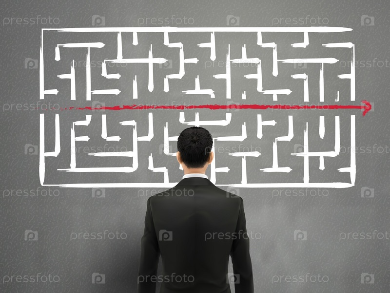 Бизнесмен смотрт на лабиринт
