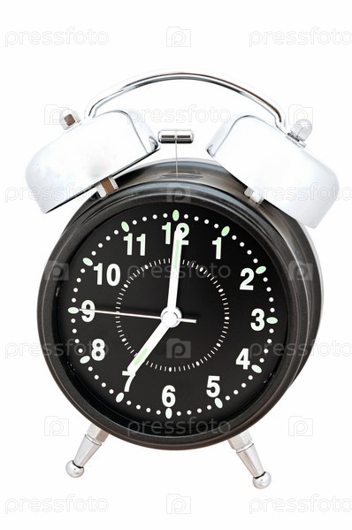 Черный будильник на белом фоне