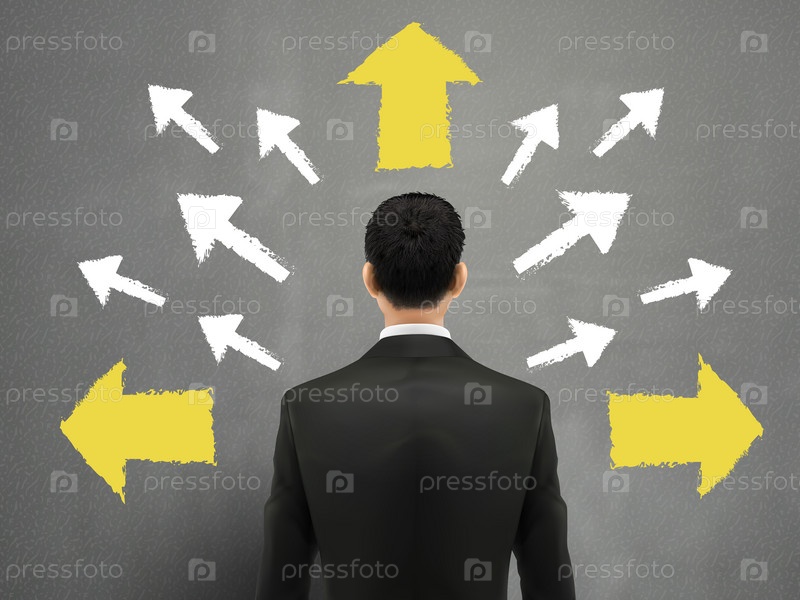 Бизнесмен и нарисованные стрелки