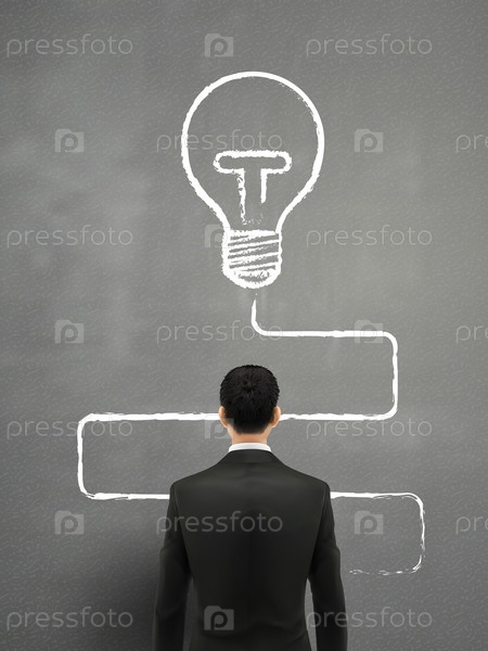 Бизнесмен с нарисованной лампочкой