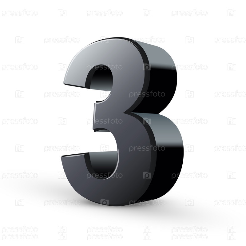 Глянцевая черная цифра три
