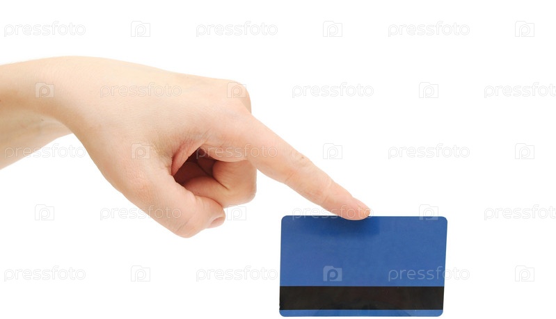 Пустая синяя кредитная карта в руке на белом фоне