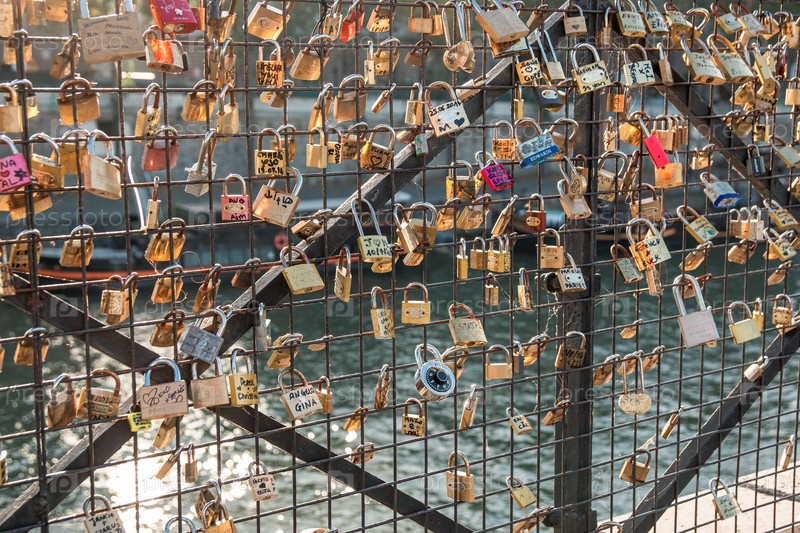 Замки на перилах моста в Париже