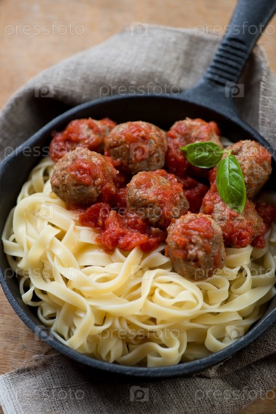 Митболлы с тальятелле в сковороде